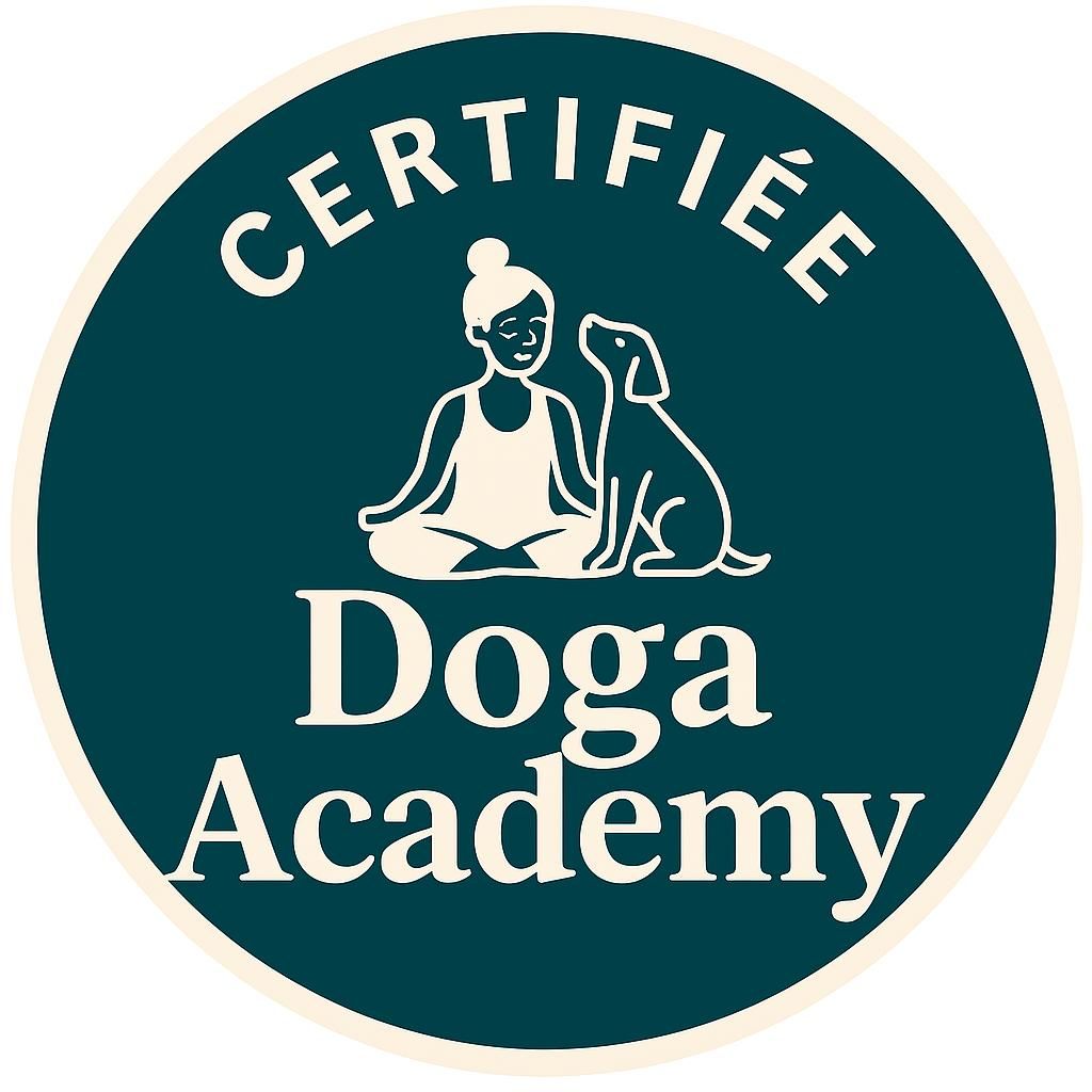 Cette certification professionnelle (ERC & Dog Walk 13) atteste d’une formation dédiée au Doga et d’une évaluation des compétences (validation des protocoles de sécurité et de bien-être). Le Doga est une pratique de bien-être qui associe yoga doux, respiration, mobilité et proprioception avec son chien : une approche ludique et accessible qui renforce le lien du binôme, dans le respect du rythme et du consentement de l’animal.